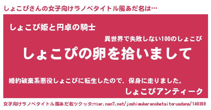 | 胡散臭い通販商品みたいなあだ名 | 『伝統あるサプリメント…その名も「しょこぴ」』 |