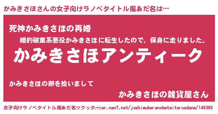 | 意味不明あだ名 | 『自称かみきさほ』 |
