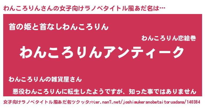 | 意味不明あだ名 | 『自称わんころりん』 |