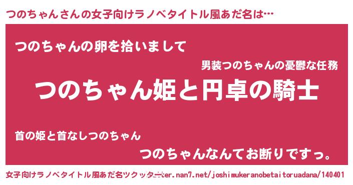 | 男性向けラノベタイトル風あだ名 | 『つのちゃんの憂鬱』 |