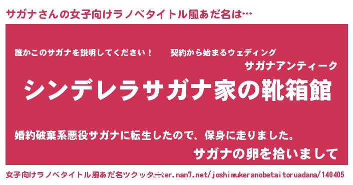 | 男性向けラノベタイトル風あだ名 | 『緋弾のサガナ』『魔法科高校のサガナ』 |