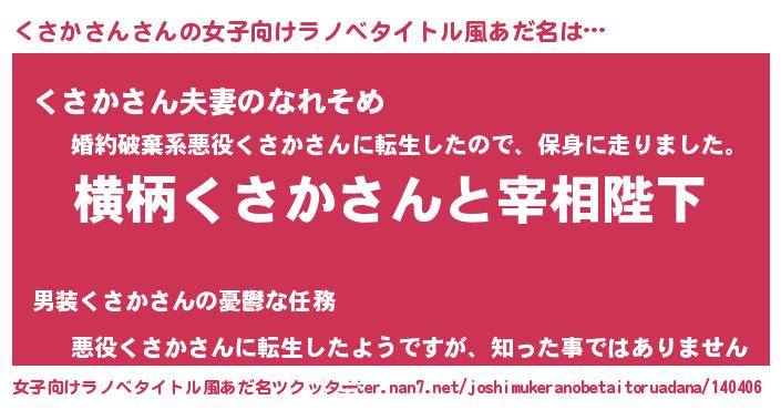 | ヘコむあだ名 | 『くさふぇ~』『くさかさん(笑)』 |