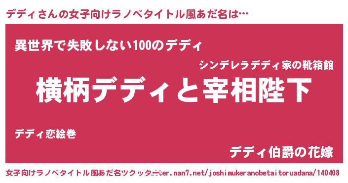 | 男性向けラノベタイトル風あだ名 | 『デディに滅ぼされるだけの簡単なお仕事です』 |