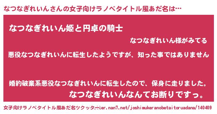| 胡散臭い通販商品みたいなあだ名 | 『あなたにだけ特別に提供する100年もののヴィンテージワイン…その名も「なつなぎれいん」』 |