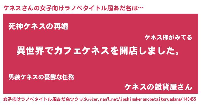 | 自動車の名前っぽいあだ名 | 『ヴィッケ』『ケンR』『ケクア』 |