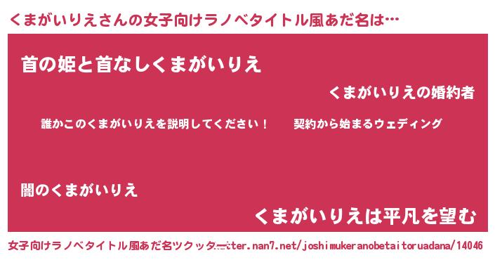 | 胡散臭い通販商品みたいなあだ名 | 『億万長者になれる水晶球…その名も「くまがいりえ」』 |