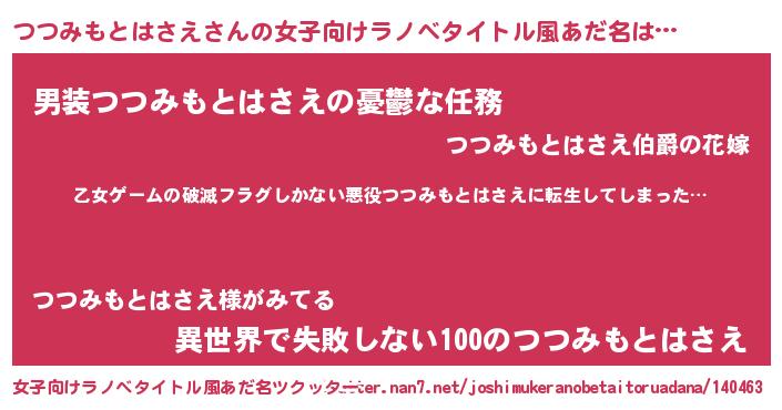 | 男性向けラノベタイトル風あだ名 | 『この素晴らしい世界につつみもとはさえを!』 |