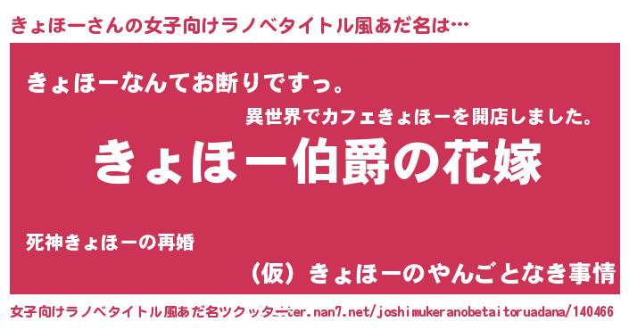 | ファンタジー風あだ名 | 『エターナルキョホーー』『ゼキョトゥ』 |
