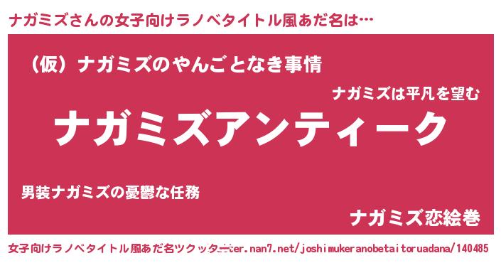 | 男性向けラノベタイトル風あだ名 | 『魔法科高校のナガミズ』 |