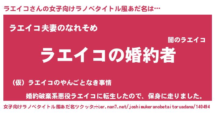| 胡散臭い通販商品みたいなあだ名 | 『運命の人と巡り会える高級そうな絵画…その名も「ラエイコ」』 |