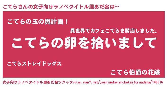 | 男性向けラノベタイトル風あだ名 | 『こてらの嫁は女の子じゃないと思った?』 |