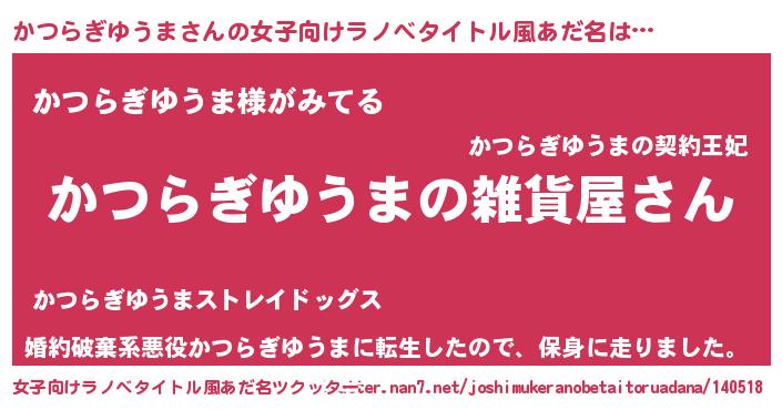 | 男性向けラノベタイトル風あだ名 | 『やはりかつらぎゆうまの青春ラブコメはまちがっている 』 |
