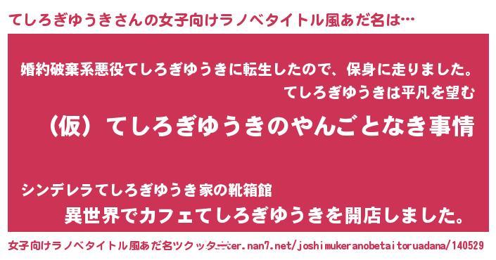 | ヘコむあだ名 | 『てしにー』『てしろぎゆうき(遠い目)』 |