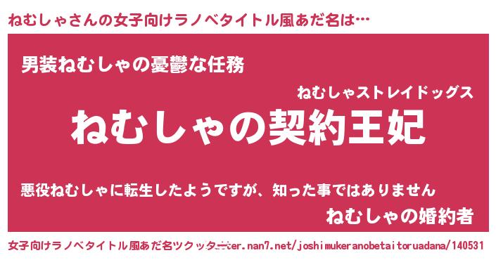 | 男性向けラノベタイトル風あだ名 | 『ねむしゃという概念が存在しない退屈な世界 』 |