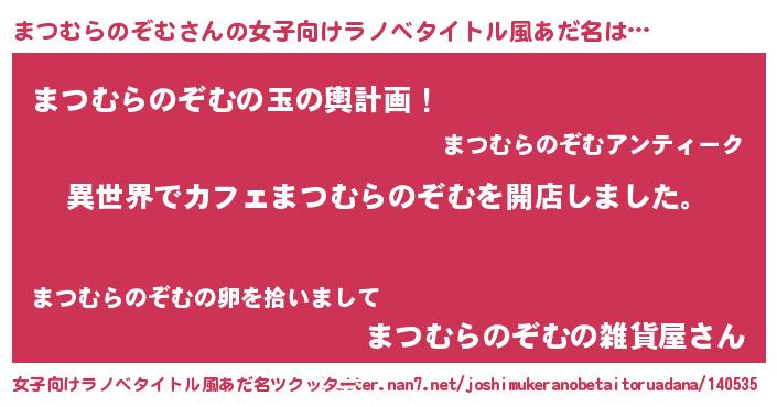 | 男性向けラノベタイトル風あだ名 | 『誰もが恐れるあのまつむらのぞむが、ぼくの専属メイドになるようです。』 |