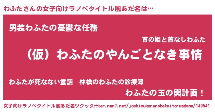 | 男性向けラノベタイトル風あだ名 | 『わふたの憂鬱』『はたらくわふたさま!』 |