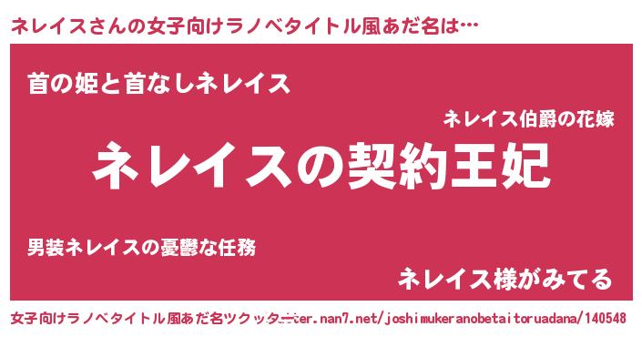 | ファンタジー風あだ名 | 『ネレディッシュ』『ファントムネレス』 |