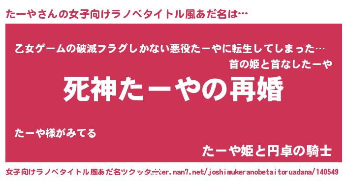 | 男性向けラノベタイトル風あだ名 | 『ノーゲーム・ノーターヤ』 |