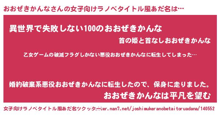 | 男性向けラノベタイトル風あだ名 | 『魔弾の王とおおぜきかんな』 |