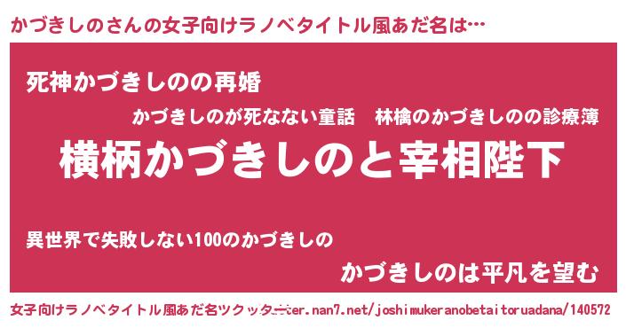 | 男性向けラノベタイトル風あだ名 | 『かづきしのに滅ぼされるだけの簡単なお仕事です』 |