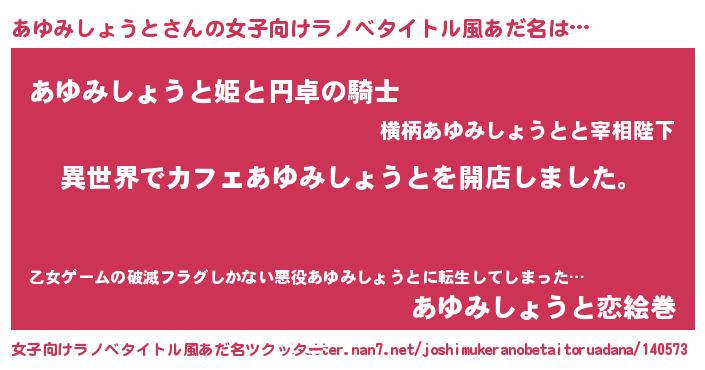 | 男性向けラノベタイトル風あだ名 | 『誰もが恐れるあのあゆみしょうとが、ぼくの専属メイドになるようです。』 |