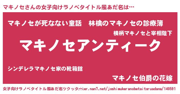| 男性向けラノベタイトル風あだ名 | 『魔法科高校のマキノセ』 |