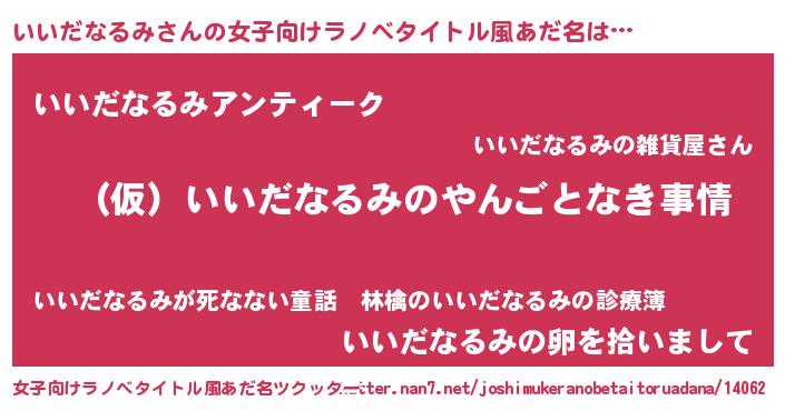 | 胡散臭い通販商品みたいなあだ名 | 『必ず成功するブレスレット…その名も「いいだなるみ」』 |