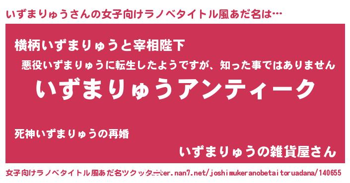 | 男性向けラノベタイトル風あだ名 | 『魔法科高校のいずまりゅう』 |