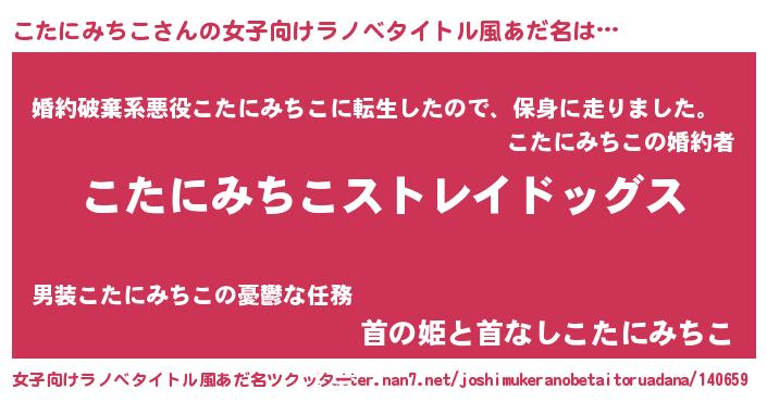 | 男性向けラノベタイトル風あだ名 | 『Re:こたにみちこから始める異世界生活』 |