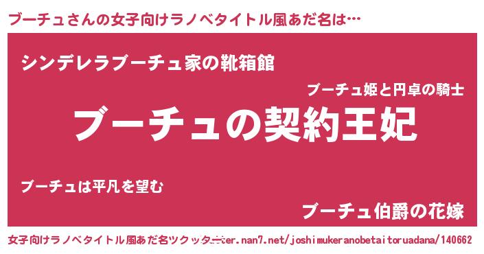 | ヒーロー風カッコイイあだ名 | 『ネオブーチュ』『ウルトラブーチュマン』 |