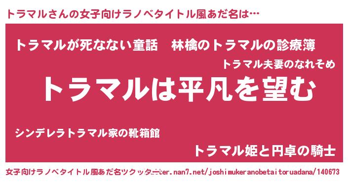 | 胡散臭い通販商品みたいなあだ名 | 『信頼と実績のネックレス…その名も「トラマル」』 |