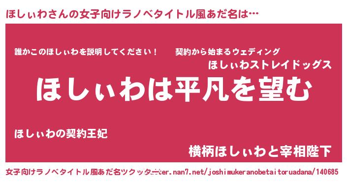 | 男性向けラノベタイトル風あだ名 | 『ダンジョンにほしぃわを求めるのは間違っているだろうか』 |