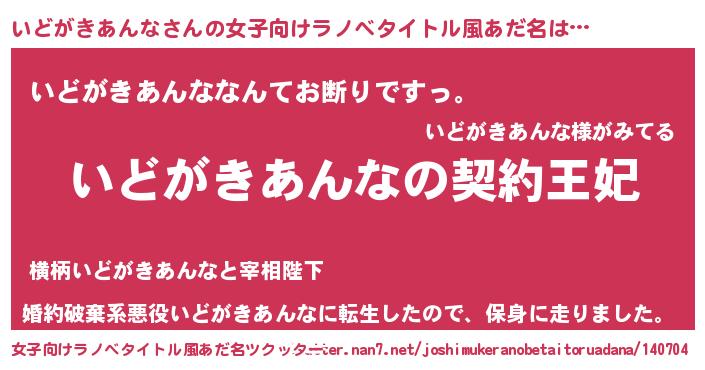 | 男性向けラノベタイトル風あだ名 | 『いどがきあんなという概念が存在しない退屈な世界 』 |