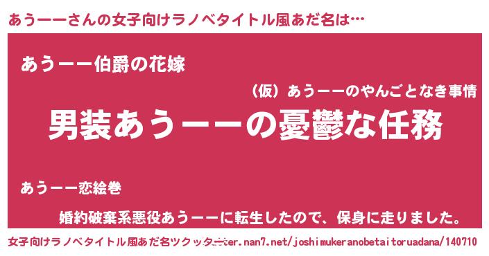 | 男性向けラノベタイトル風あだ名 | 『冴えないあうーーの育てかた』 |