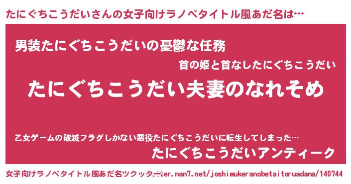 | 肩書あだ名 | 『たにぐちこうだい助手』 |