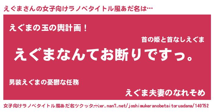| ヒーロー風カッコイイあだ名 | 『超時空戦士エグマ』『正義の使者えぐま』 |