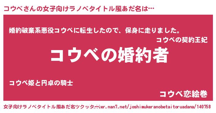 | 男性向けラノベタイトル風あだ名 | 『うちの娘の為ならば、俺はもしかしたらコウベも倒せるかもしれない。』 |