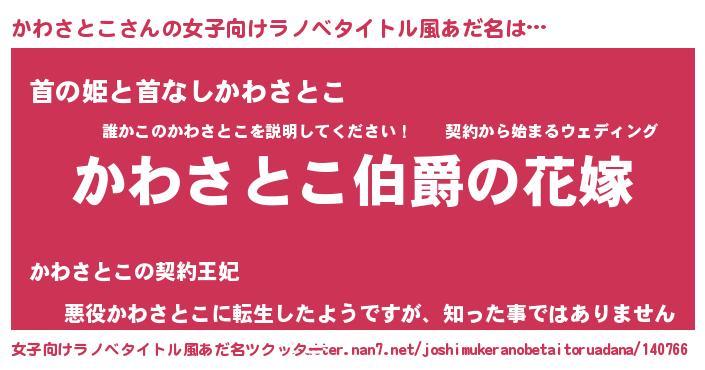 | 胡散臭い通販商品みたいなあだ名 | 『世界が平和になる高級そうな壺…その名も「かわさとこ」』 |
