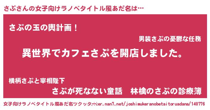 | 男性向けラノベタイトル風あだ名 | 『誰もが恐れるあのさぷが、ぼくの専属メイドになるようです。』 |