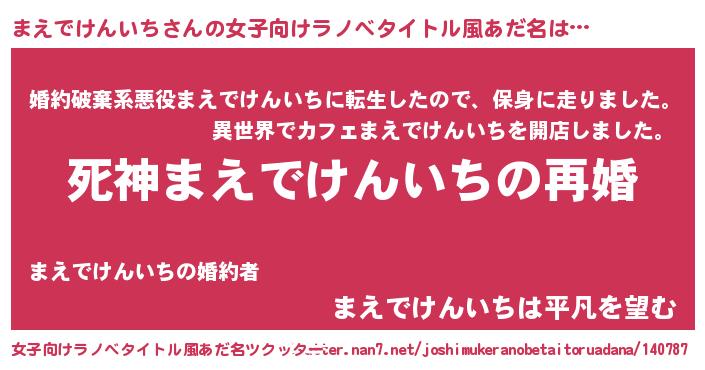 | 伝説のあだ名 | 『救世主となる錬金術士まえでけんいち』 |