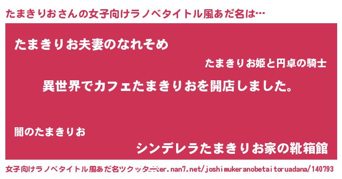 | 胡散臭い通販商品みたいなあだ名 | 『前代未聞の健康食品…その名も「たまきりお」』 |