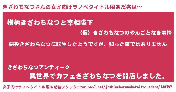 | 男性向けラノベタイトル風あだ名 | 『この素晴らしい世界にきざわちなつを!』 |