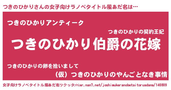 | 男性向けラノベタイトル風あだ名 | 『うちの娘の為ならば、俺はもしかしたらつきのひかりも倒せるかもしれない。』 |