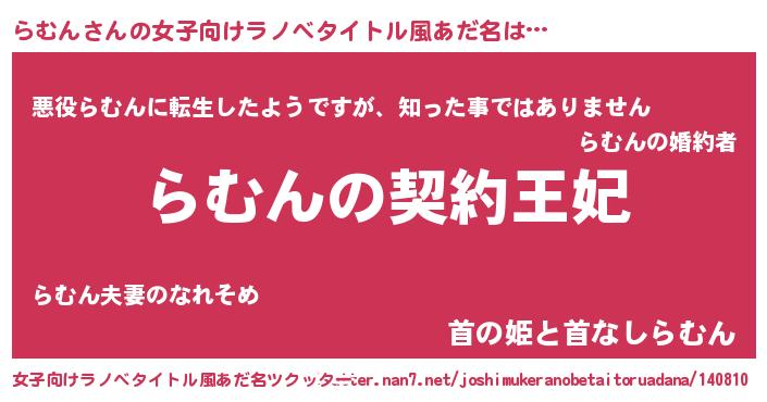 | 男性向けラノベタイトル風あだ名 | 『らむんという概念が存在しない退屈な世界 』 |
