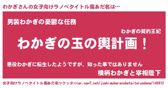 | ヒーロー風カッコイイあだ名 | 『ネオワカギ』『仮面ワカダー』 |