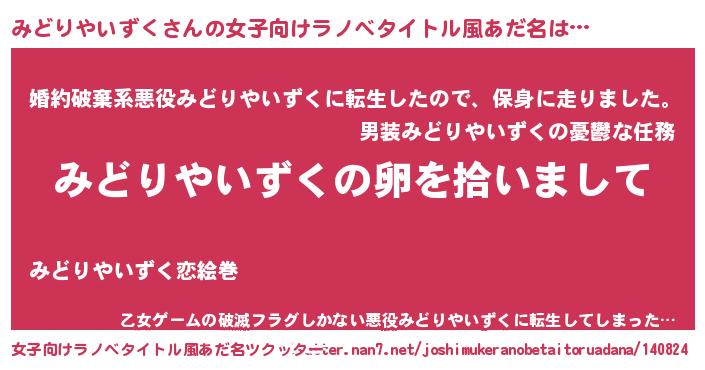 | ヘコむあだ名 | 『みどっ子』『みどりやいずく(遠い目)』 |