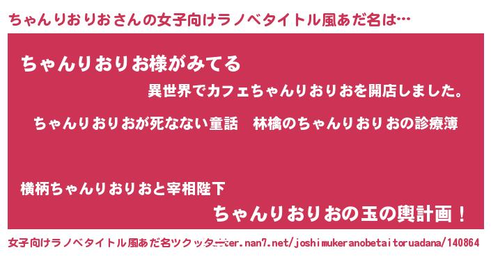 | 男性向けラノベタイトル風あだ名 | 『魔弾の王とちゃんりおりお』 |