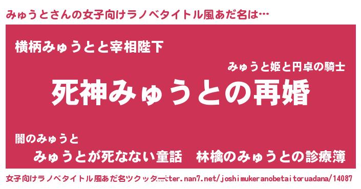 | 男性向けラノベタイトル風あだ名 | 『ノーゲーム・ノーミュウト』 |