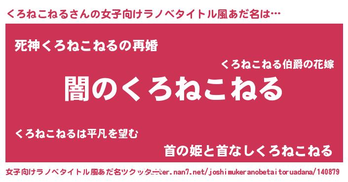 | 男性向けラノベタイトル風あだ名 | 『Re:くろねこねるから始める異世界生活』 |