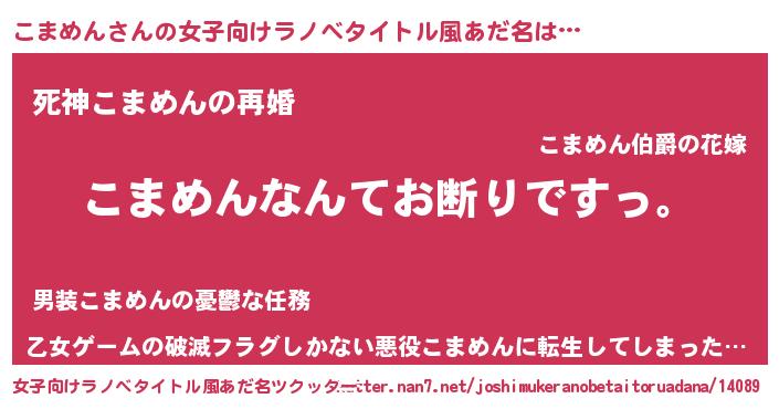 | 男性向けラノベタイトル風あだ名 | 『魔法科高校のこまめん』 |